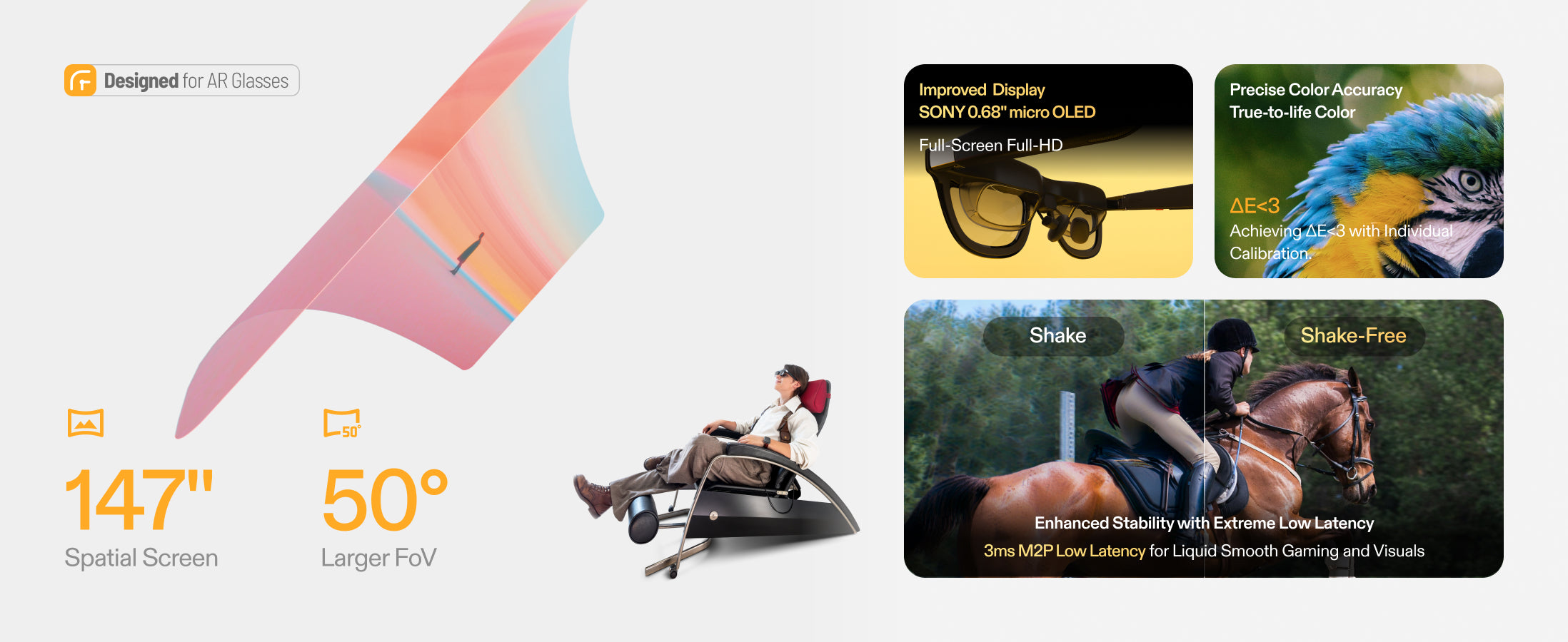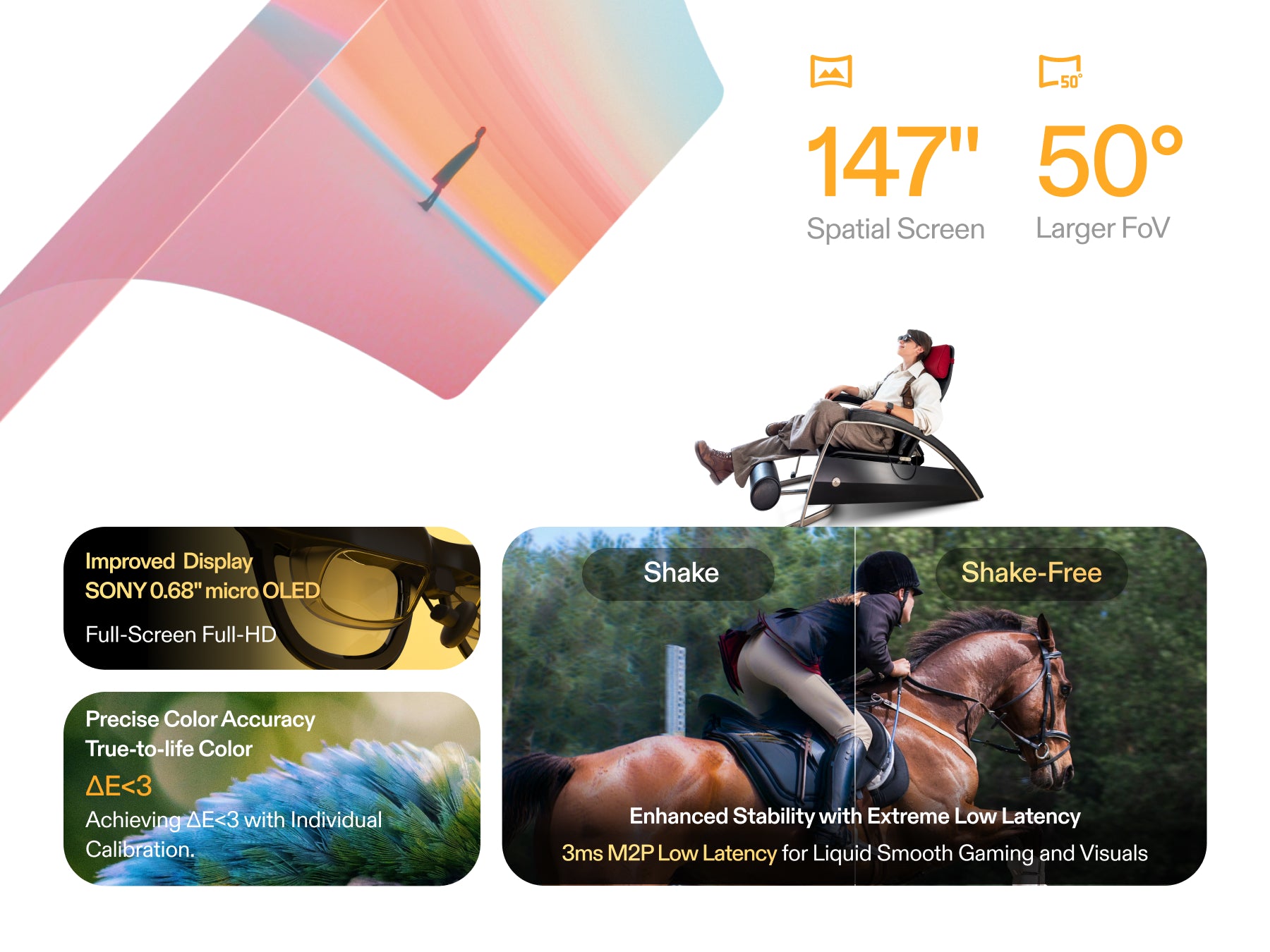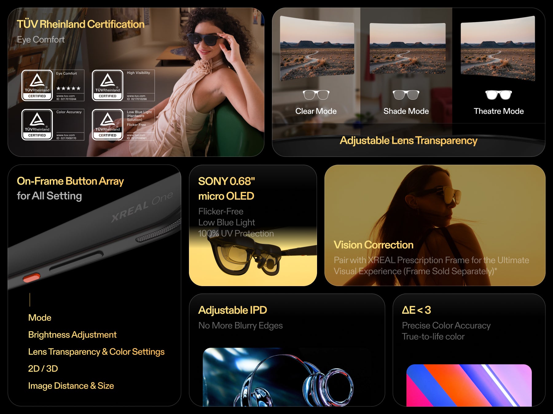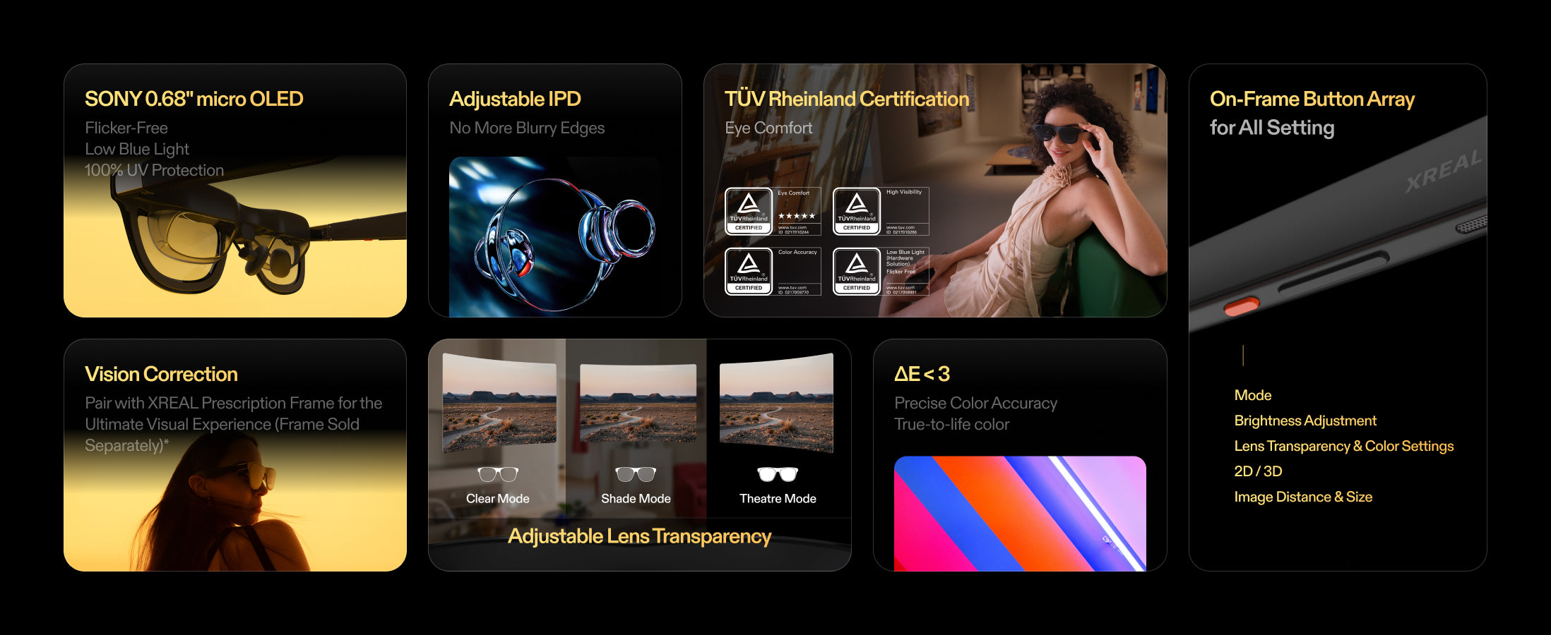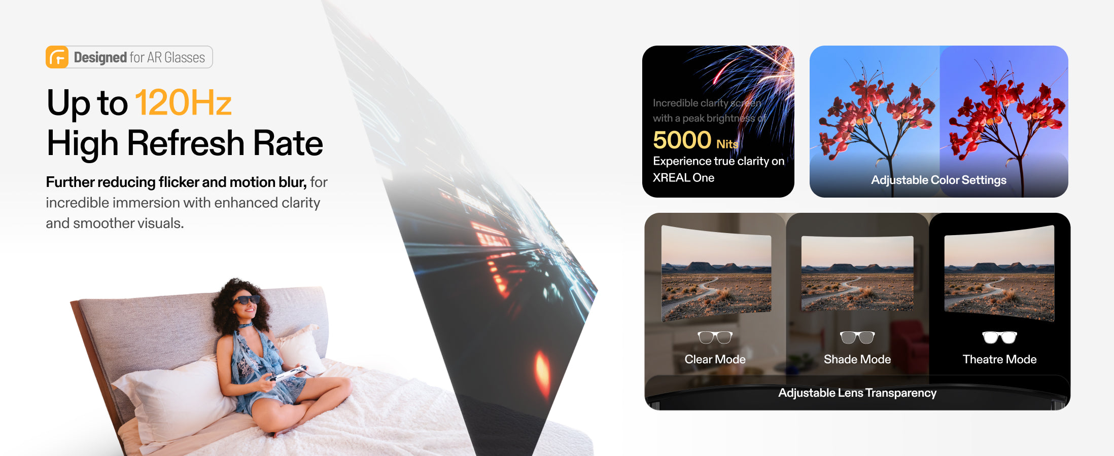 Both XREAL One and XREAL One Pro are advanced, AR devices with a built-in chipset that has revolutionized spatial displays. Compared to the XREAL One, the XREAL One Pro has a larger FOV (field of view), with a marginally brighter virtual screen, both of which enhance the visual experience.XREAL One Pro features an new and improved display system that significantly reduces outside light interference during use and reduces the image reflection sometimes seen on the front of the glasses, protecting user privacy.Additionally, XREAL One Pro features thinner and more lightweight front frame, giving it an inconpicuous appearance.XREAL One Pro offers multiple interpupillary distance (IPD) options to accommodate users with different IPD needs.